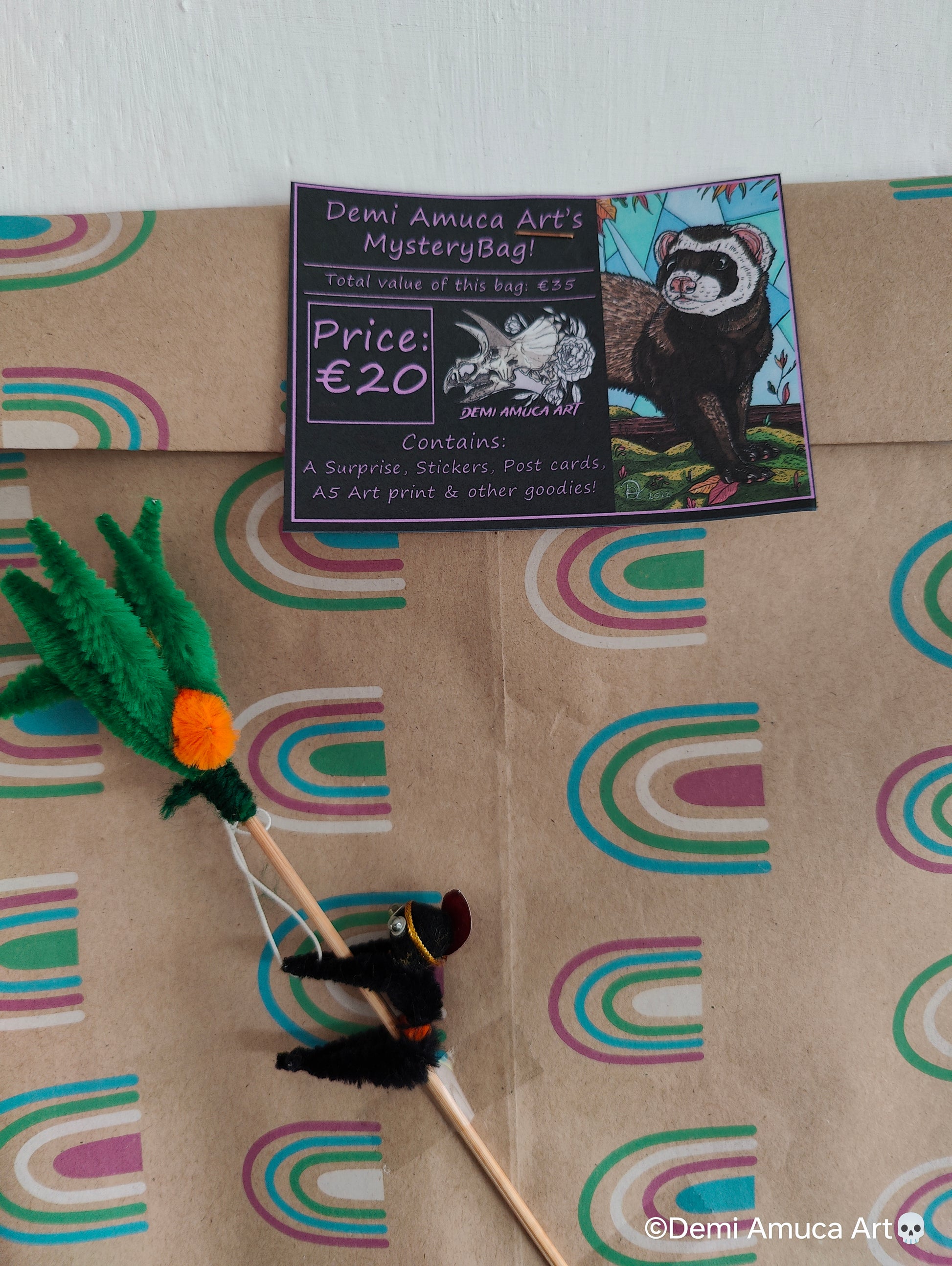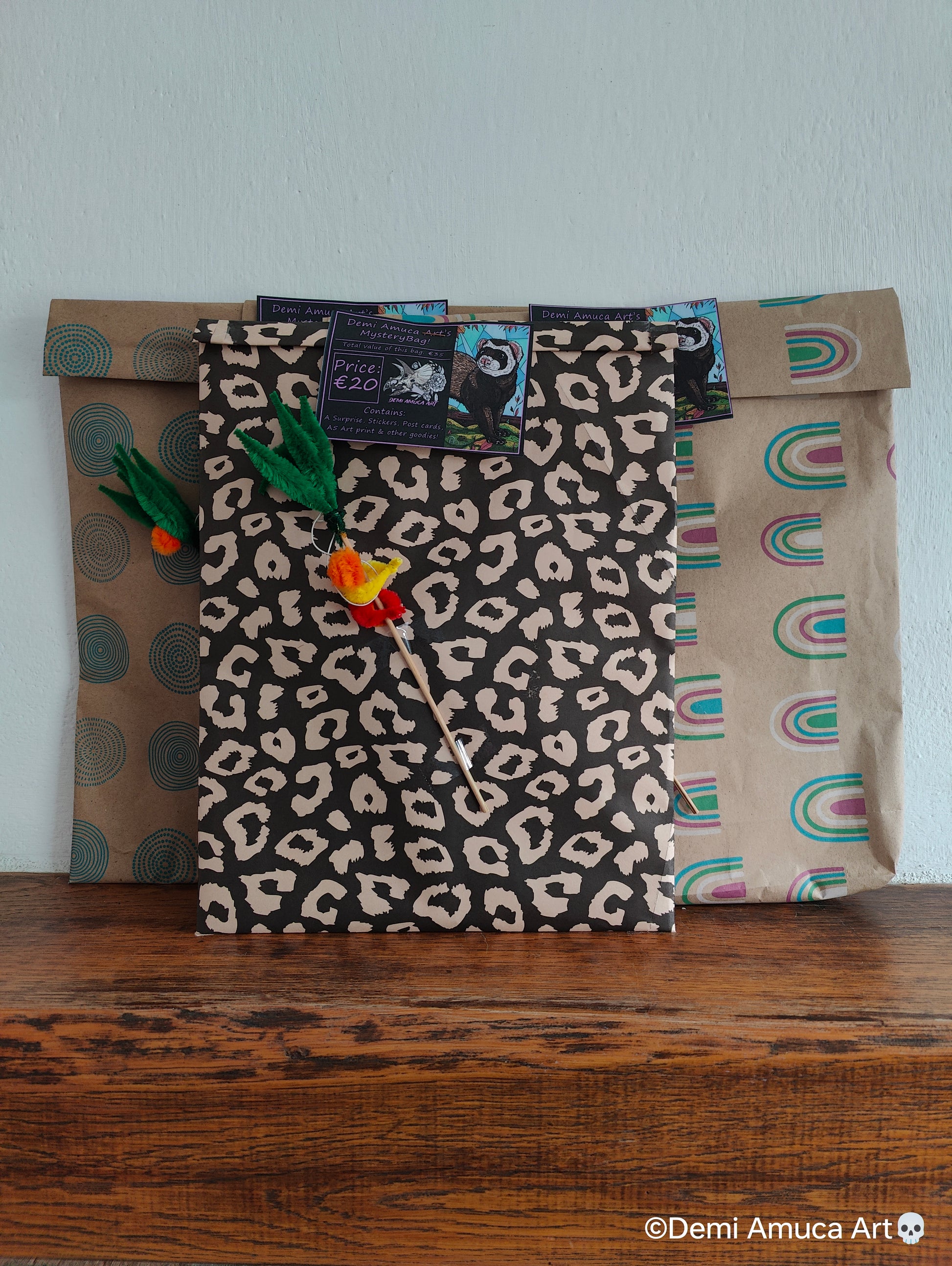 These cool mystery bags contain a special surprise, A5 art prints, stickers, postcards & surprises!! The value is about €35