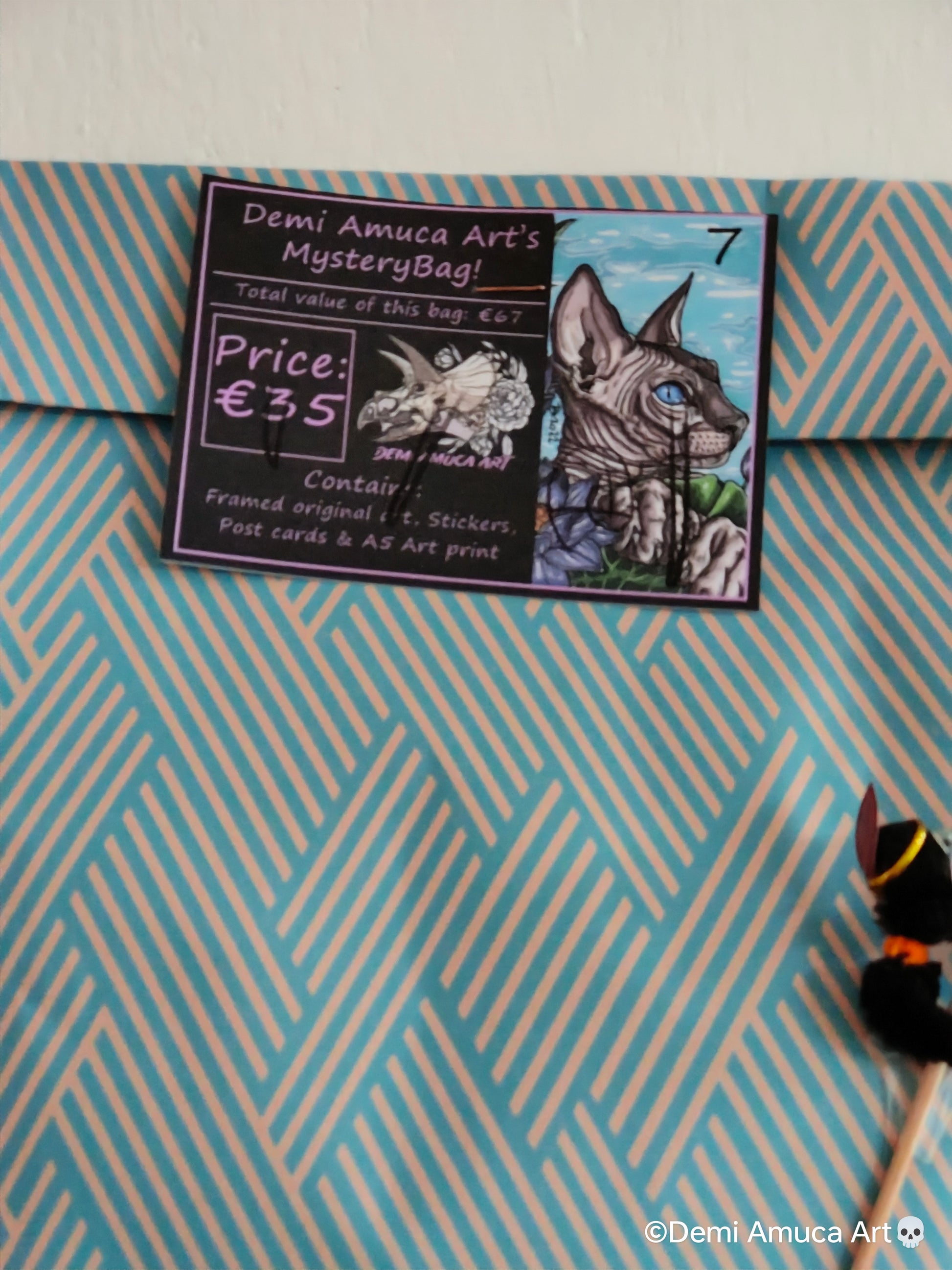 These cool mystery bags contain a framed original art or framed art print, stickers, post cards & A5 art prints! Their value is about €67